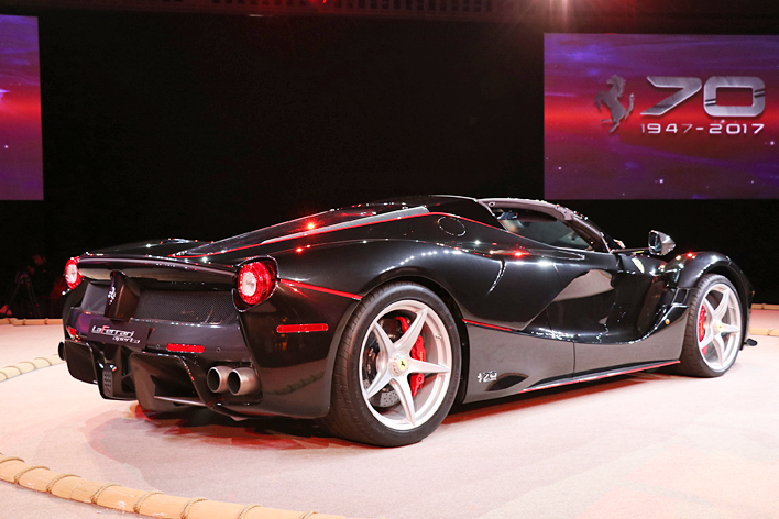 2016年のパリ・モーターショーで初めて発表され、生産された209台は既に完売。今回、日本初公開されたのは、フェラーリが創立70周年を記念して1台だけ追加生産したモデル。因みに、追加されたこの210台目のラ・フェラーリ アペルタもチャリティオークションに出品され、830万ユーロ(日本円で約10億7700万円)で落札されており、全額慈善団体「セーブ・ザ・チルドレン」に寄付されている。