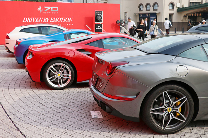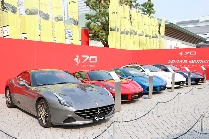 創立70週年記念「Driven by Emotion」日本イベントでは、10月12日~13日にかけて両国国技館の正面出口および側道にて、フェラーリの歴史を彩ってきたモデルを多数展示する「フェラーリ エキシビションFerrari 70th Anniversary Celebration」と、オーナー所有のフェラーリモデルが秋の日本を巡る「エクスクルーシブ ラリー Ferrari 70 Years Exclusive Japan Rally」(13日~14日)等が行われる。