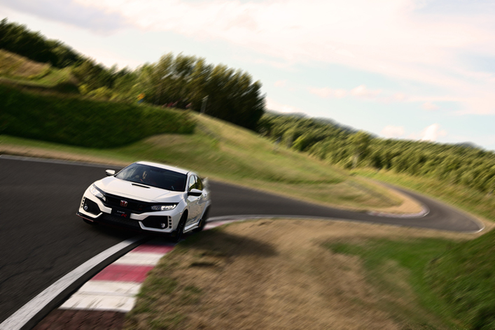 まず高速周回路に入り、基本特性のチェックを行う。先代タイプRと全く違うのがエンジン特性。スペックだけ見たら10馬力アップの320馬力である。