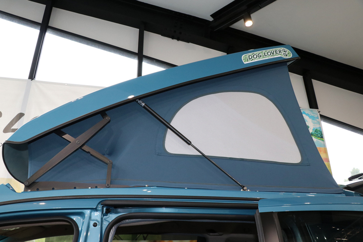 まず、フリード+ DOG LOVERでひときわ目を引くのが、屋根に取り付けられた「ポップアップルーフ」だ。