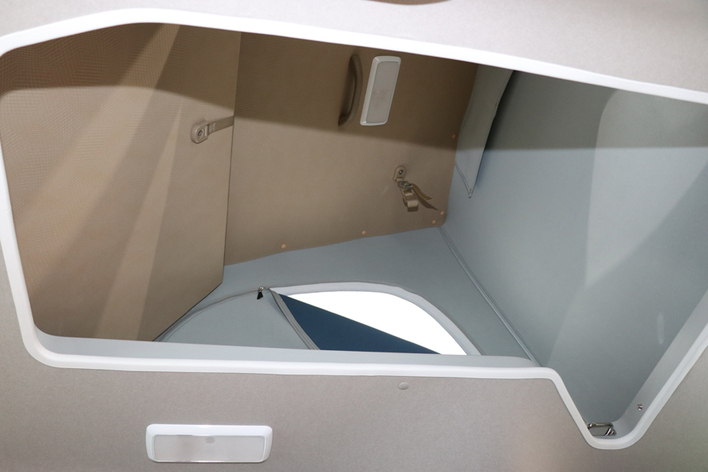 手動でルーフを上に持ち上げるとロフトが出現。一見狭そうに見えるのだが、大人2人が横になれるほど広々としたスペースが生まれる。