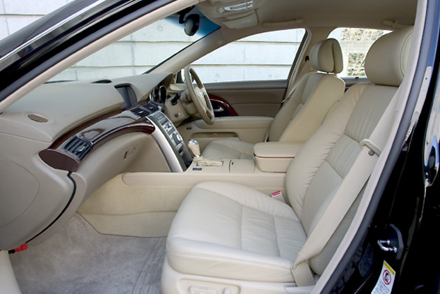 レジェンドはアメリカでも「アキュラ」店の最上級モデルとして販売している。そこで、ボディサイズも大きくした。全長4930mm、全幅1845mmというサイズは、日産フーガやトヨタ・クラウンアスリートよりも大きい。とくに、全幅を1.8m以上したことは、国産の上級セダンとして、英断だった。