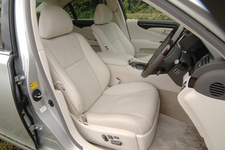 ボディサイズは旧セルシオと比較すると全長15mm、全幅45mm大きく、全高は5mmだけ低い。ホイールベースは45mm長いというプロポーション。かなりリッパに見える。ただし、町中を走ってみると、スタイリングコンセプトが似ているためか、あまり目立たなかった。
