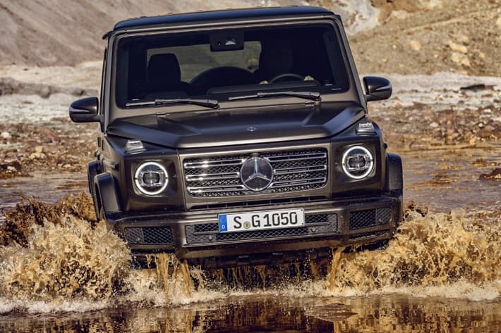 けれど、もっと好ましいのは中身の方だ。ラダー・フレームをキープしつつモノコックをアルミへと変更して170kgの軽量化に成功してること、サスペンションはフロントをダブルウィッシュボーンに変更しつつリアはリジッドをキープし、さらにトレーリングアームの数を増やしてパナールロッドを追加するなど、オンロードでの快適性とオフロード性能の双方をこれまで以上に高いものに仕立てあげた様子がうかがえること。マニアックな人が車体の下側を覗き込んでニヤニヤしていたけど、そう、Gクラスは日本的ないい方をするならあくまでも“ヨンク”であって欲しいわけで、“SUV”になって欲しくはない。それは世界共通の願いなのだと思う。