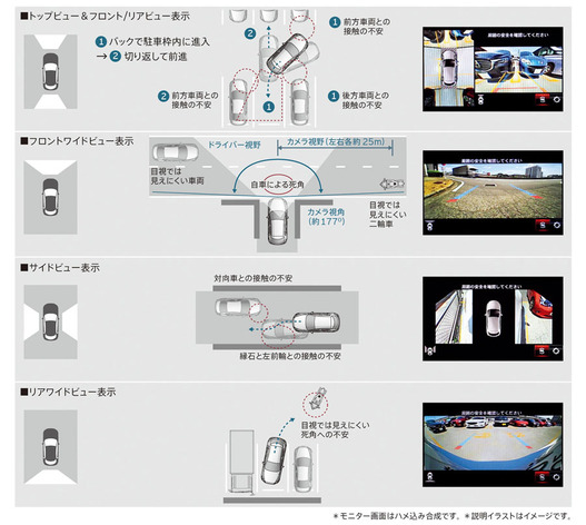 加えて、今回発売するアクセラでは、駐車場や幅の狭い道路などを低速で運転する際に、車両周囲の状況をモニターで確認できる「360°ビュー・モニター」を、マツダ車として初採用する。