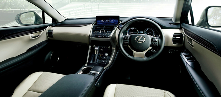 内装色は、リッチクリームとオーカーのほか、“F SPORT”専用色としてホワイトとフレアレッドを新たに採用するとともに、本アルミ(名栗調仕上げ/シルバー)のオーナメントパネルを追加した。