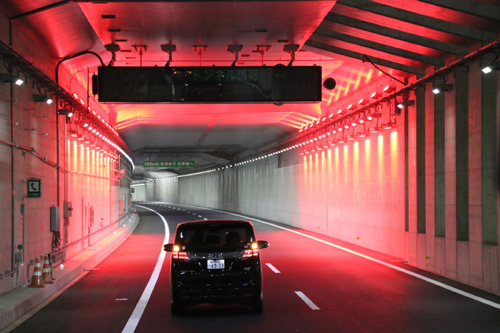 なお万が一の緊急時、進行先の危険を知らせるため掘割・トンネルの照明を赤い警告灯に変える「警告灯照明」の機能も追加された。こちらも実際の点灯の様子を見学したが、通常のトンネル入口にある信号機の赤表示に比べ、危険さがかなり明確に伝わりやすいことに感心させられた。