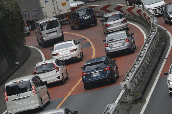 設定速度は首都高が定める制限速度の時速60キロにセットして走行したが、平日の首都高は渋滞が激しい。この交通環境でも、運転支援を保てるのがアイサイト・ツーリングアシストのメリットだ。ハンドル操作の支援は、以前は時速65キロ以上だったが、今は停車時まで制御を行える(スバル レヴォーグはマイナーチェンジ以前から、全車速追従型のアダプティブクルーズコントロールを採用している)。