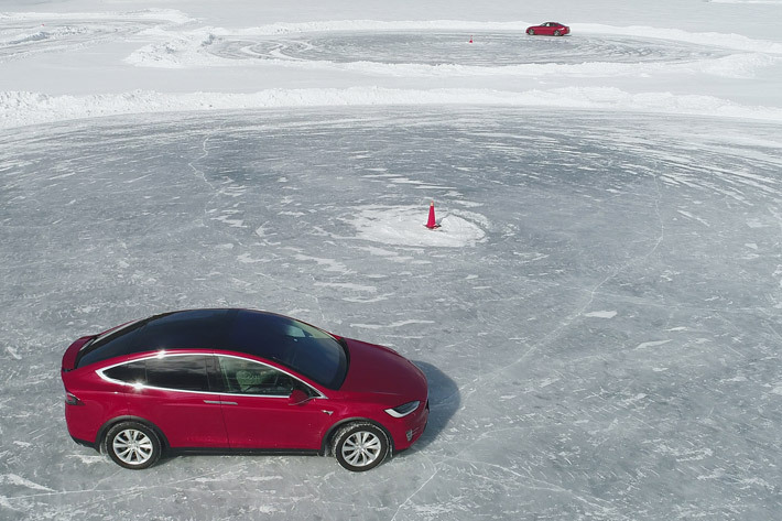 滑りやすい氷上でもしっかり楽しめたテスラ モデルX