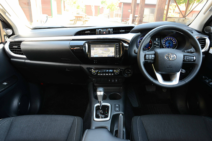 新型ハイラックスに用意されるグレードはベーシックなX(326万7000円)と上級のZ(374万2200円)があり、Zには単眼カメラとミリ波レーダーを使って緊急自動ブレーキを作動させるプリクラッシュセーフティシステムが装着される。歩行者の検知も可能だ。LEDヘッドランプなども備わり、装備の充実度は高い。そこでZを試乗した。