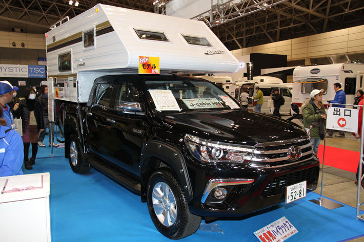 ジャパンキャンピングカーショー2018会場で個人的にググっと来たのが、国内でもまだ発売開始間もない新型トヨタ ハイラックスのキャンピングカーだった。