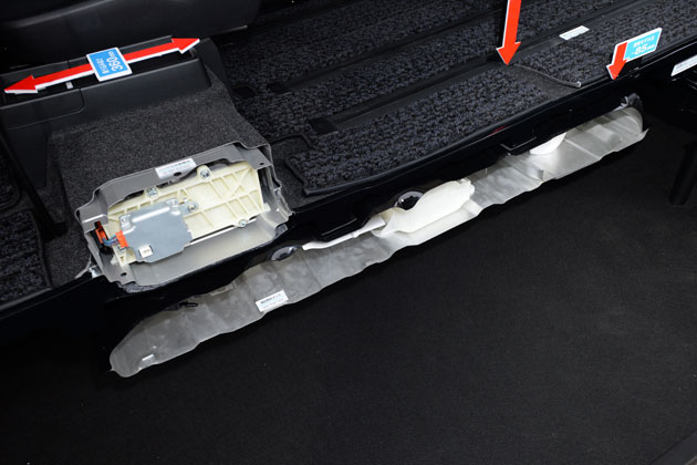 高い位置に座れば膝から先が前方に投げ出されず、実質的に足元空間を広げたのと同じ効果が得られる。3列目シートの格納方法は、従来型と同じくレバーのみで操作することが可能。この特徴は受け継いだ。