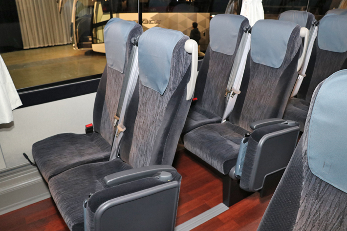 また、ドライバーが急な体調不良などで運転が困難になる異常事態に対し、運転席及び客室最前部に設置された非常ボタンを作動させることで緊急停止を図るという安全装備、その名も「ドライバー異常時対応システム」が搭載される。