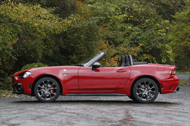 写真は「ヘリテージルック」装着車。ペイントとラッピングの2タイプから選択出来るのがユニークだ。<アバルト124スパイダー AT&MTモデル 試乗レポート/今井優杏>