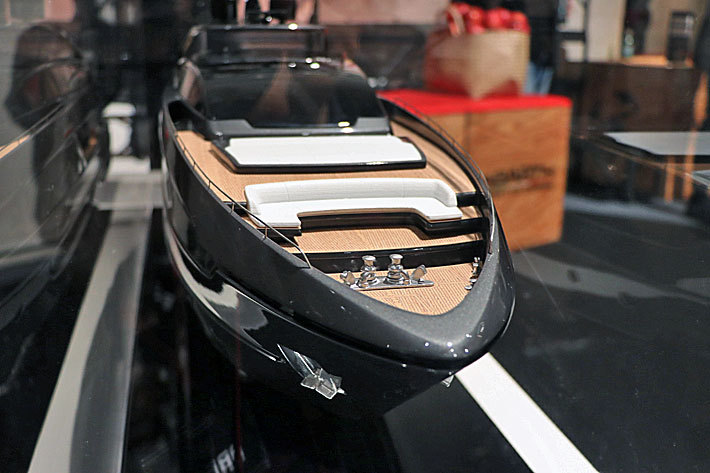 その長い歴史、そして革新的なボートづくりを極める探求心が、アバルトブランドに流れるチャレンジングスピリットとも相通じるものがあり、コラボが実現した。