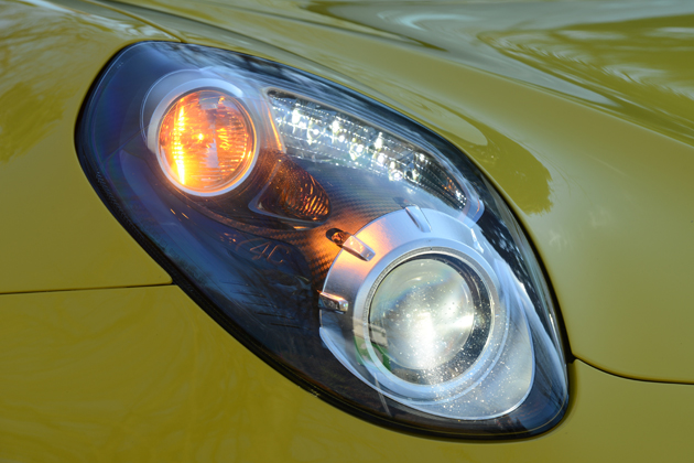 4CクーペのバイLEDヘッドライトから、4Cスパイダーではデザインも異なるバイキセノンヘッドライトへと変更されている。