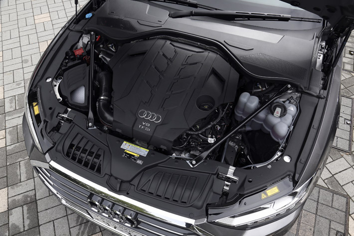 特に上級パワーユニットである4リッターV8 TFSIの穏やかな出力特性は、こうした印象に拍車を掛けた。どこからでも豊潤なトルクと4WDのダッシュ力が快適な出足を実現し、そのままアクセルを踏み倒せばハイパーセダンの超高速巡航を可能にする。