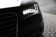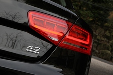 近年のアウディの特徴である、LEDを駆使したヘッドライトをいち早く導入しているが、上級の4.2では、フルLEDヘッドライトが与えられているのは、デザイン上の強烈なインパクトがあるだけでなく、機能的にも優れる。ワイド感を強調し、エッジを立てるなどして、より立体的に見せている。 ルーフがなだらかに落ちてくるサイドビューは低く伸びやかに目に映り、ボディパネルの横に1本配された、凝ったプレスラインも印象的だ。