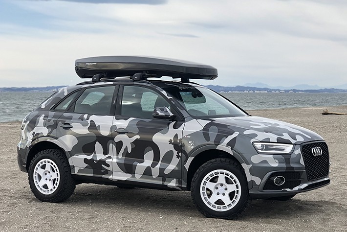 メイクオーバーが仕上げたKさんのアウディ Q3は、カモフラージュラッピングとホワイトホイールのFifteen52ターボマックが目を引く1台。ラッピングをよく見ると、アウディの四輪駆動システム「クワトロ」のシンボルであるゲッコーが描かれている。カスタマイズアイテムにもアウディらしさが隠れている粋な演出が特徴だ。