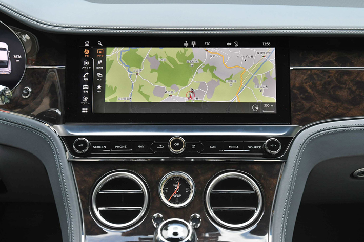 サスペンションやエンジン、ギアボックスなどの設定を変えるは「ベントレー・ドライブ・ダイナミクス・コントロール」の仕事。と言ってもそもそも635馬力もあるので、たとえ「コンフォートモード」でも力強い走りです。ドライブモードは4つ。「コンフォートモード」「ベントレーモード」「スポーツモード」「カスタム」がありますが、ベントレーだけに「B」のマークの「ベントレーモード」を使いたくなりますが、このモードはまさにそんな心理を突いたかのようにバランスが良く、どこまでも気持ちよく走れる設定。ほかのモードも試みましたが、「Bモード」だとモード切り替えをしなくてもジェントルマンな走りを約束してくれます。2トン以上もの重さや全長&全幅共に大きいサイズなので気は使いますが、ハンドルさばきが軽やかで乗りにくくないのは「ベントレー・ダイナミック・ライド」や「エアサスペンション」「電動パワーアシストステアリング(EPAS)」、最新式の連続可変ダンピングコントロール、(CDC)など先進の車両制御のお陰でしょう。