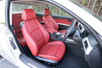 駐車場から出る瞬間から期待が高まった。まず最初に感じたのはステアリングフィールのすばらしさ。もともとBMWは定評があり、各メーカーのベンチマークだったが335iクーペはさらに秀逸だ。操舵力はクーペによく似合っており、さらに切り増した時の微妙な反力が絶妙だ。これだけでもちょっとドキドキする。さらにフロント/Wジョイントストラット、リア/マルチリンクのサスペンションチューニングはとっても快適。コーナーを駆け抜けたときにはロールを無理に押さえ込むのではなく、ある程度はロールを許容しながら、すばやいステアリングの切り替えしにもすばらしい追従性を見せる。乗り心地は決して柔らかくはないのだが節度があって、しかも路面の凹凸を把握しながら乗員には疲労感を与えにくいという心憎いところに落ち着けている。うまい!ただアクティブステアリングは最初は慣れを要する。