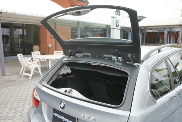 テールゲートは小物類の出し入れに便利なガラスハッチ付き。トノーカバーは使用時にはテールゲートのオープンに連動して開き、ラゲッジスペースへのアクセスを容易にするというアイデア機能付きだ。後席使用時の460Lから後席アレンジ時には最大で1385Lのという値をマークするラゲッジスペースの容量は「このセグメントでは最大級」というのがBMWのコメント。ちなみに、居住スペースや室内装備類に関しては、ルーフレールが標準装備されスキーバッグがオプション設定される以外は「セダンの325iと同一」とされる。