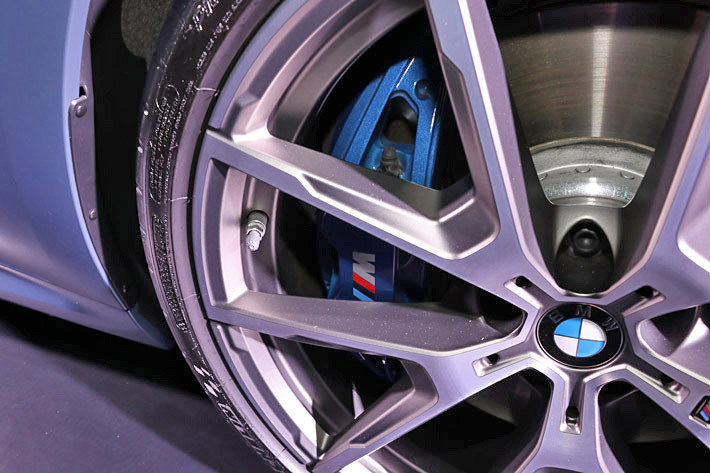 足回りを覗くと、青いブレーキキャリパーに「M」の文字。これは新型8シリーズが持つ本当の性能を意味している。ラグジュアリーとハイパフォーマンスが同居していることが、エクステリアで既に表現されているのだ。