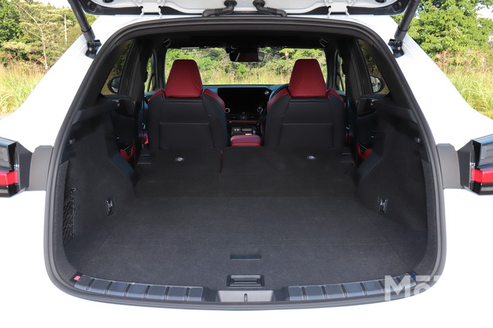 荷室の広さは同程度です。後席を使った時の荷室床面長は、新型GLCが960mm、NXは982mmです。これだけの容量があると、大きな荷物も積みやすいです。