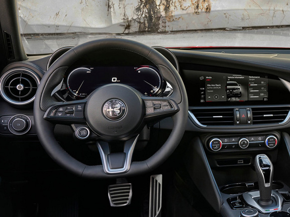 アルファロメオジュリアは、アルファロメオスポーツセダンの中心として存在している車種でライバルはズバリBMW3シリーズとの真っ向勝負です。ボディサイズは4,655×1,865×1,435mmと思った程大柄ではありません。搭載されているパワートレインは、2リッター4気筒ターボです。280PS/40.8kg・mを発揮します。トランスミッションは、8速オートマチックが搭載されパワーは後輪を駆動します。前VELOCE にも4輪駆動モデルがありましたが今は入って来ていません。