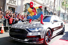 アウディ新型A8が“蜘蛛の巣カモフラージュ”を纏い登場!ボンネットの上にはスパイダーマン!?