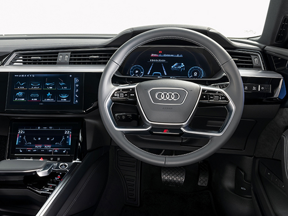 アウディの電気自動車モデルとして登場したe-tron。SUVらしいワイドで力強いボディと、アスリートのように引き締まった立体的な造型、そして緩やかに弧を描くボンネットやルーフライン、アクティブなイメージを高めるルーフレールが独自のキャラクター性を主張。広々とした居住性とユーティリティ性を確保しながら、オンロードにおいてもオフロードにおいてもダイナミズムとスポーティさを表現する。e-tronには車両前後に配置された2基のモーターがそれぞれ前輪と後輪を駆動する、新世代の電動4WDシステム「quattro」を搭載。通常はリアモーターのみで高効率を維持しながら走行し、鋭い加速が必要な場合や、様々な天候や路面状況に応じてフロントアクスルにトルクを伝え最適なトラクションを発揮。路面に吸い付くような走行安定性、ダイナミックな推進力で快適なドライブが楽しめる。