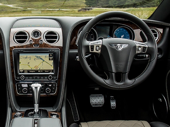 ゴージャス&パワフルなクーペ。堂々たるサイズのボディサイズと、迫力十分のフロントマスクによって圧倒的なオーラを漂わしているのがコンチネンタルGT。まさにグランドツーリングを思わせるクルマだ。ベントレーはVWの傘下にあるだけにエンジンは6LのW12。ツインターボの装着によって411kW/650N・mの圧倒的なパワー&トルクを発生する。0→100km/hをわずか4.8秒という駿足の持ち主だ。駆動方式はフルタイム4WDでハイパワーを余すところなく路面に伝える。本革シートやウッドパネルなど、自然素材を使って英国車らしい雰囲気にあふれたインテリアはラグジュアリィという言葉がピッタリはまる。(2003.10)