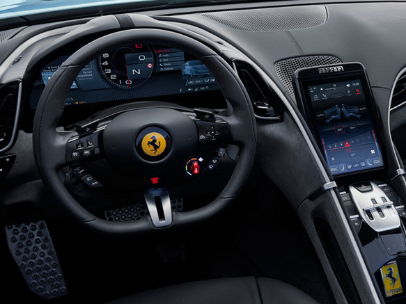 走りと先進装備を進化。フェラーリのフロントミッドシップ2+2クーペ、ローマに追加設定されたオープンモデル。オープンモデル伝統の名称である「スパイダー」が与えられた。モデルが具現化している精神は「La Nuova dolce vita(新しい甘い生活)」。ルーフには専用のファブリック素材が採用されており、時速60km/hまでなら13.5秒で開閉が可能。エクステリアは、長いボンネット、流麗なライン、優美な曲線といった造形上の特徴をクーペの姉妹モデルから受け継ぎながらも、オープンエアの爽快な走りが実現された。エンジンは、最高出力620psを発生する、3.8L V8ツインターボエンジンを採用。組み合わされるトランスミッションは、8速の「デュアルクラッチ・オートマチック・トランスミッション」。0-100km/h加速は3.4秒で、最高速度は320km/hをマークしている。(2023.5)
