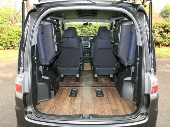 家族思いの設計が際立つミニバン。一番の特長はリアの「わくわくゲート」。これは一般的なハッチバックゲートとして上向きに開くだけでなく、ドア左半分のみが横向きにも開くという画期的なもの。車体後ろのスペースが狭い駐車場や、高い位置まで手の届かない子供でも簡単に荷室にアクセスできる優れものといえる。床が低くフラットなので、乗り降りがしやすいのも嬉しい。2017年10月から、ハイブリッドモデルが追加された。