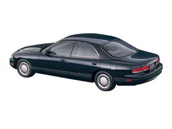 パーソナル志向を強めたビッグサルーン。’90年代にマツダのフラッグシップとして君臨した最上級のFRサルーン、センティアのアンフィニバージョン。ブラックアウトされたグリルやホイールデザイン、ボディカラーなどに違いがある程度でコンポーネンツは同じ。ボディサイズをひと回り拡大するとともに、全高を低めに設定し、よりパーソナル感を強めている。エンジンは3L、2.5LのV6の2種類。ミッションは4ATのみの設定。グレードは各エンジンに2タイプ設定され、25タイプI/タイプII 、30タイプII I/タイプIVの全4グレード。ボディカラーは7色、インテリアカラーは3色が用意されている。(1991.10)
