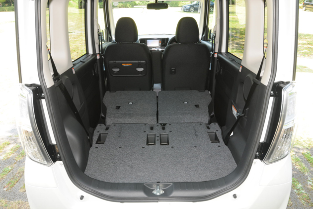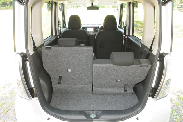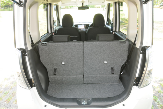 軽自動車ながら広い室内空間を持ち、家族で出かける際はもちろん、大きな荷物を積み込むのにも便利な一台。1,400mmの天井高があるため、子どもが車内で立ち上がることもできる。リアシートは左右それぞれ前後にスライドすることができ、電動スライドドアも装備するため、広い車内を自在に使える。先行車への衝突を防ぐ「エマージェンシーブレーキ」や車庫入れ時に便利な「アラウンドビューモニター」も装備する。