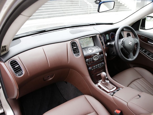 日産 スカイラインクロスオーバー 暖電動茶本革シート・HDDナビ・フルセグ・