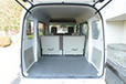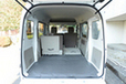 プチキャンピングカー仕様です。ほぼ、自分専用車(お父さん号)フロントにノーズが全くないので、ぶつかったときの安全性は気になりますが、その分、後部は広々大空間。