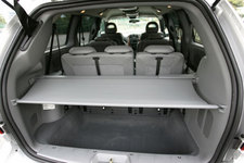 3列あるボイジャー。2列目と3列目を倒してフラットにした場合、4550Lものカーゴスペースが出現する。理由は、シートを床下に完全格納するからである。操作も30秒といたって簡単。手順を説明すると、ヘッドレストを下げ、背もたれを前に倒す。ここまでは2列目3列目も一緒。このあと2列目の場合、後方にスライドさせ、床面のふたをあけて、シートを前にゴロッと倒し入れ込む。3列目の場合はバックエントリーよろしく、後ろに倒す。この簡単な操作で、いままでのミニバンではありえなかった、ワイドなスペースが現れる。ちなみに、このシートを格納するスペースは、シートを使っている場合でも、収納スペースとして利用可能となる。これだけでも、340Lもある。