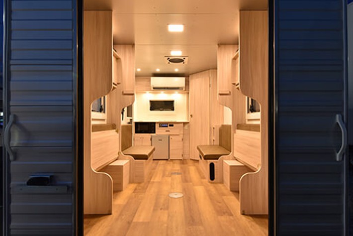愛知県豊橋市に拠点を構えるキャンピングカーメーカー。代表の黒田氏がバイクをワンボックスカーに積載してレース活動を行っていたことから、レースマシンではなく人を乗せて楽しむことができたらと考えて創業。三河地方の職人の手による丁寧で上質な木工家具を始め、独自開発したオフグリッドシステムを全車搭載するなど、ハイクオリティなキャンピングカーを製作している。また日本の道路事情にフィットしたトレーラー「トレイルワークス」や、アメリカ製のキャンピングトレーラー「エアストリーム東海」も展開している。