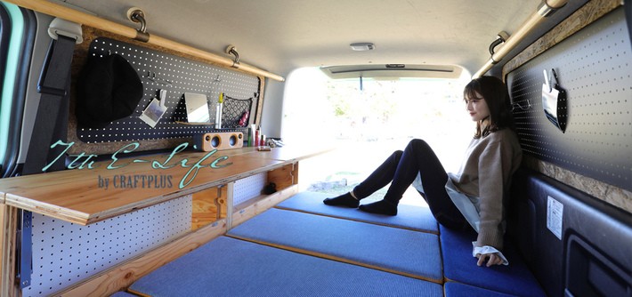 CRAFTPLUS(クラフトプラス)は、1999年9月に立ち上げた有限会社ビーンズが運営するハイエースのインテリアパーツを設計・製造しているブランドだ。同ブランドの特徴は、他では見る事のできないハイセンスなデザインと機能性の高いインテリアパーツをハンドメイドで製造していることにある。クラフトプラスが製造するベッドキット・コンソールボックス・アームレスト等の各種インテリアパーツは、オシャレに敏感なユーザーからも高い評価を得ており、年々ファンを増やし続けてている。そんなクラフトプラスが提案するライフスタイルプロジェクトが“7th E-Life”だ。