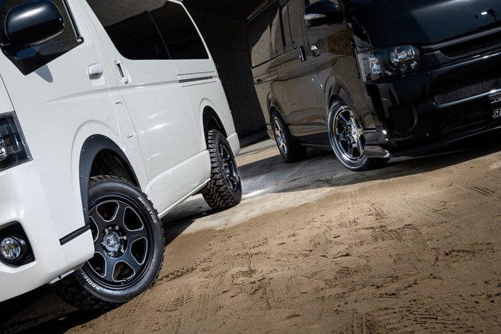 トヨタ ハイラックス、トヨタ ハイエースをはじめとしたUSヘビーデューティ指向のカスタムを得意とする石川県金沢市のカスタムビルダー。オフロードテイストの外装や足回り、アウトドアレジャーにハマるセンスの良い装備をセレクト。FORCEブランドのホイールを筆頭に積極的にオリジナルパーツの開発も行う。