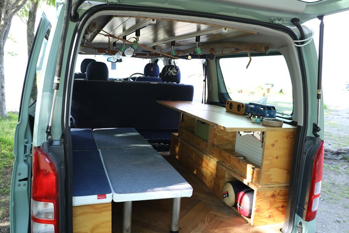 さまざまなアウトドアアクティビティに馴染むハイエース用インテリアパーツ