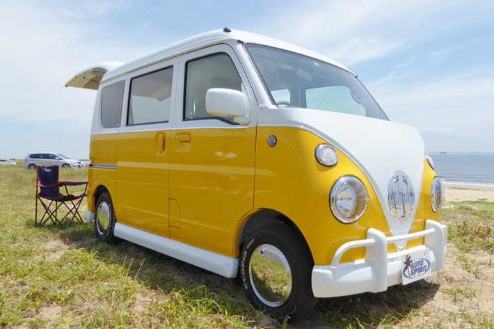オートスピリットは、新車・中古車販売や買取、各パーツ販売・取付、ヴィンテージバンのカスタマイズを行うショップ。クラシックカーや旧車を軽自動車で再現した現代版クラシックカーを作ることができます。ワーゲンバス仕様やフレンチバス仕様など、レトロでかわいいオリジナルのキャルルックカーを製作しています。工場併設のため、アフターサポートも充実。