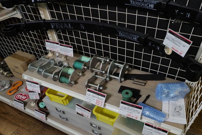 1983年創業の株式会社タニグチは、兵庫県姫路市に店舗を置くカスタムパーツの製造および販売を行っている老舗ジムニー専門店。自社工場を持っており、バンパーなどのドレスアップパーツからリフトアップキットなどの足まわり、そして性能を最大限に引き出すチューニングパーツまで様々なジムニー用パーツを開発している。