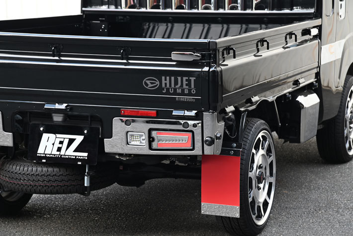 「REIZ(ライツ)」とは京都にあるハイゼットトラックを中心とした軽カー用のドレスアップパーツブランド。車体ボディに貼り付けるだけで手軽にスタイリングが変身してくれる主にステンレスを使った内外装パーツをラインアップ。純正ボディを徹底的に研究し、設計・製造しており、後付け感なくスタイリングを上質に仕立てるアイテムとなっている。また、普通車用のドレスアップパーツブランド「Revier(レヴィーア)」も展開している。