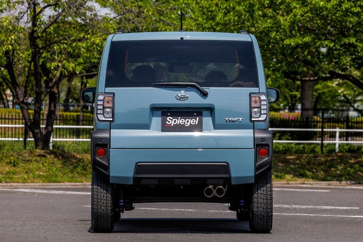 MOTAトップ 車のカスタムパーツ(カー用品) タフトをローダウンして乗り心地をチューニングできる車高調と、手軽に約40mmアップできるリフトアップキットが登場! リアビューをカッコよくドレスアップできるマフラーもご紹介/Spiegel(シュピーゲル)Vol.17 画像No.23