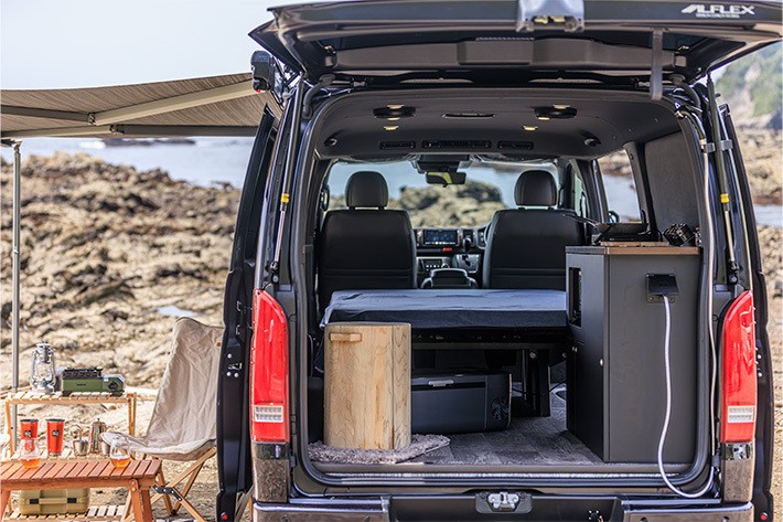ADDSETはアルフレックスが手掛けるバンコンバージョンのブランド。開発から設計、製造までをアルフレックスで一貫して行っているので、使い勝手やクオリティ、デザイン性が高く、多くのユーザーから支持されています。「CEEBUS(シーバス)」や「C'sNEX (シーズネクス)」といったハイエースベースのキャンピングカーが代表作。