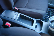 フロアコンソールはATとMTでは仕様が異なる。ATは前からセレクター、カップホルダー、ボックス、カップホルダーの順。MTは前からカップホルダー、シフトレバー、パーキングブレーキレバー、カップホルダーの順となる。MTの場合、パーキングブレーキレバーの左右に細長いボックスを用意し、CDなどを立てられるようにしている。