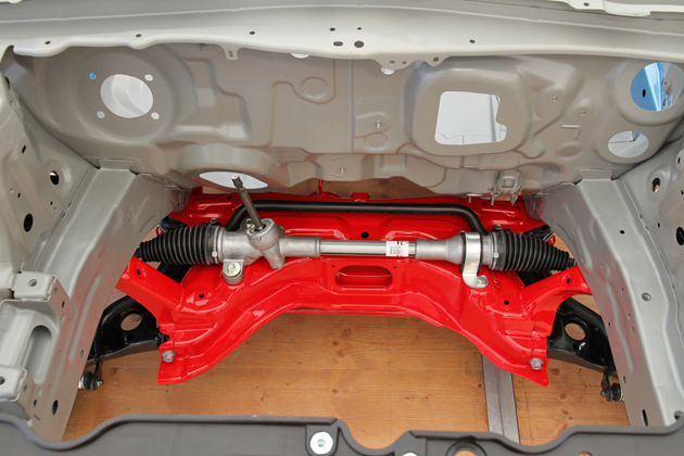 「感動の操安性と乗り心地の良さを両立」(ダイハツ)させたというサスペンションはコペン専用設計。フロント:マクファーソンストラット式、リア:トーションビーム式。
